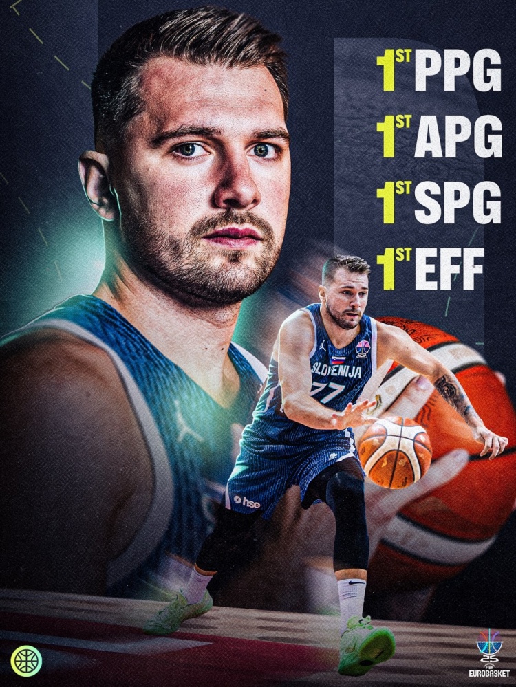 东契奇的得分、助攻、抢断还有效率值四项数据均排在本届欧锦赛的第一。欧锦赛官方社交账号评价到:“卢卡在欧锦赛各项数据里都在统治比赛 🔥。”